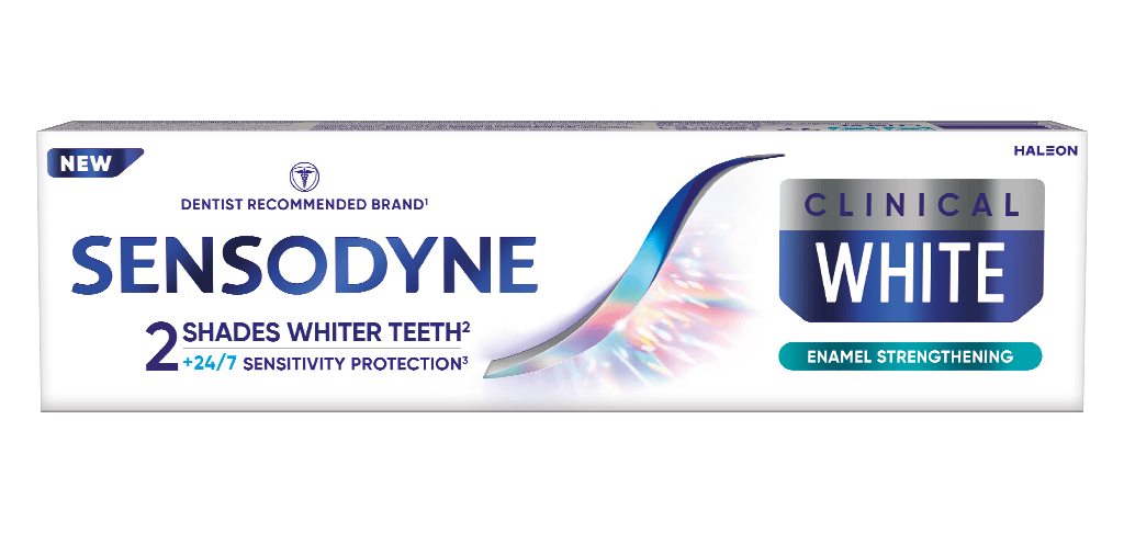 Objavte Sensodyne Clinical White Enamel Strengthening, najpokročilejšiu bieliacu technológiu pre citlivé zuby značky Sensodyne. Klinicky testovaná zubná pasta ponúka o 2 odtiene belšie zuby, účinné odstránenie škvŕn a 24/7 ochranu pred citlivosťou. Šetrné zloženie na každodenné použitie.